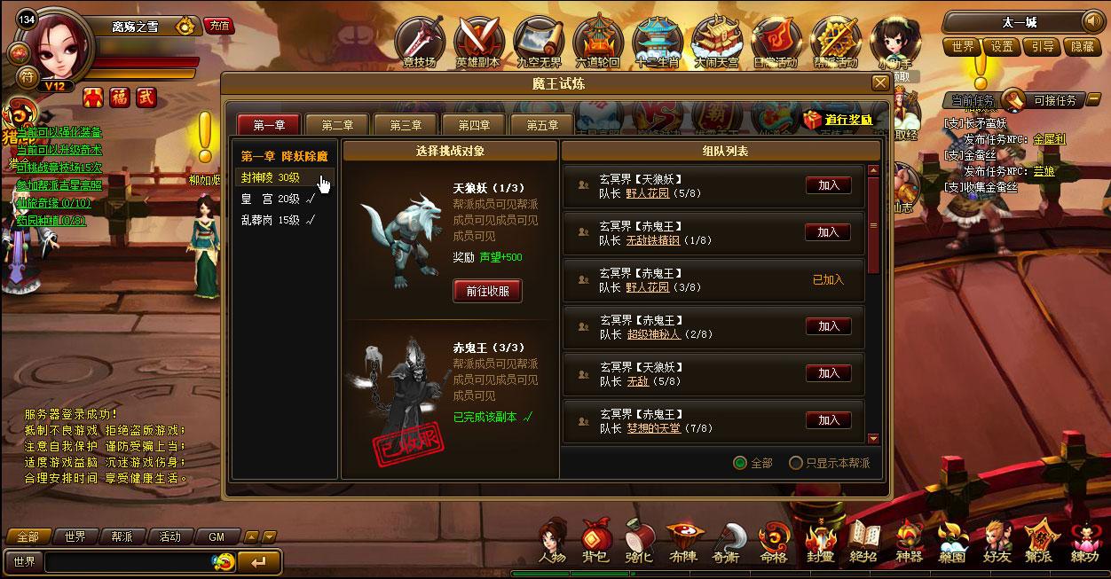 a)魔王试炼组队功能在玩家通关苏州城主线副本后开启,全天开放,活动时间收益提升