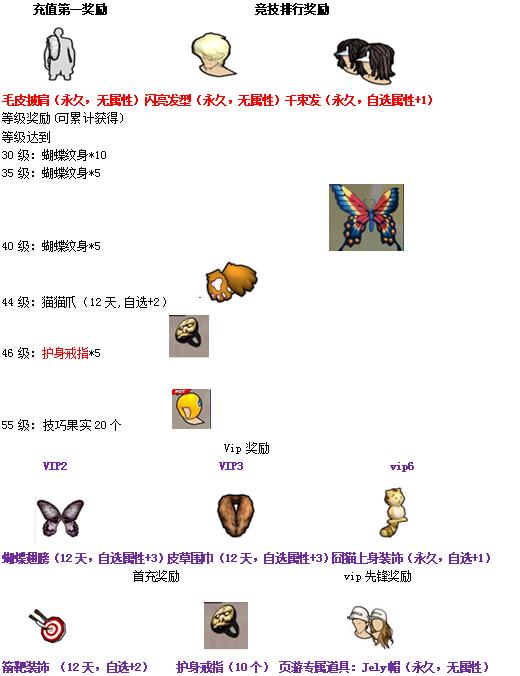1.vip2奖励:等级达40级,且达到v2将获得:蝴蝶翅膀(,2天,自选属性+3)