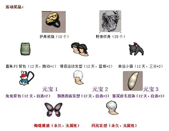 G.元宝消费第一名玩家可获得:闪亮发型(白色,永久,无属性)