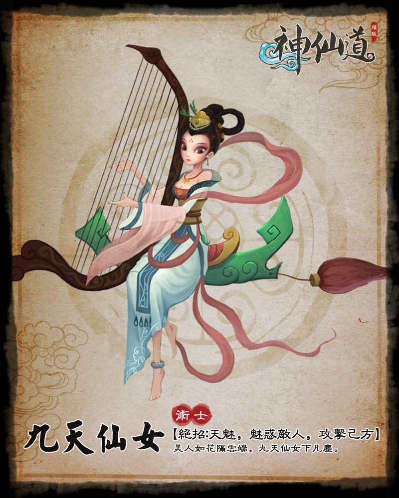 1)九天仙女:术士,70万声望,绝技为天魅,敌下一回合将攻击己方并概率晕眩